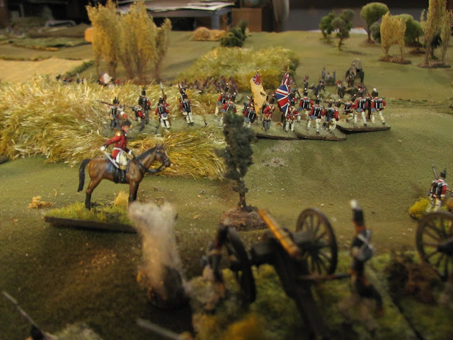 With the Allied horse gone Charlot and the grenadiers begin to close in on Anstruther. Upper left the 3/32me take some heavy shelling from the 6 pdrs. on the ridge.